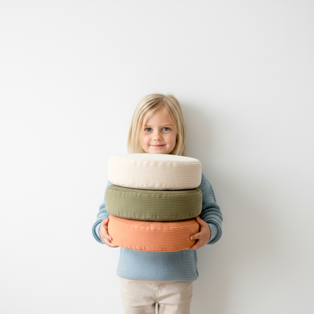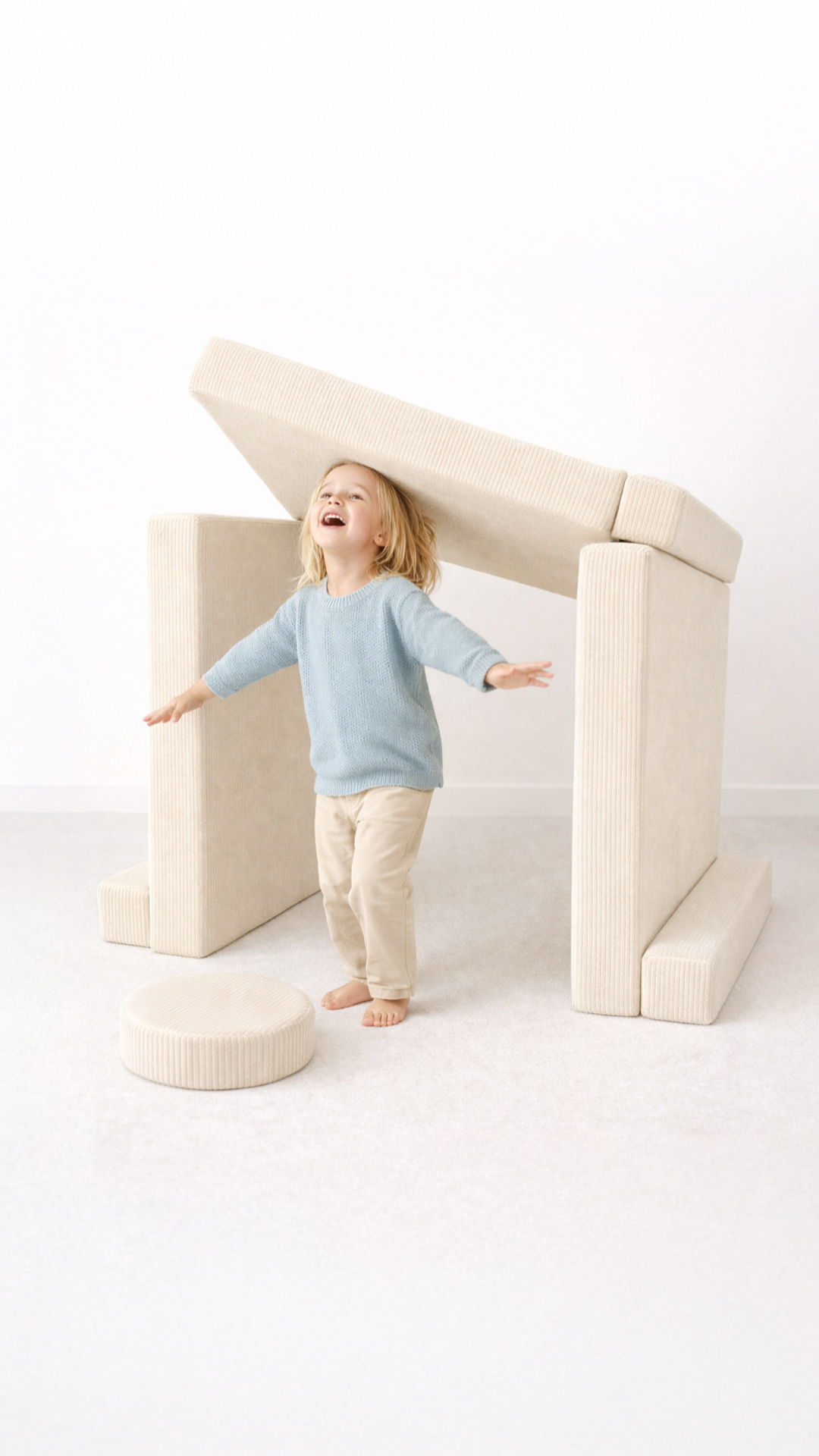 Ezzro Play Sofa Circle Bundle is a 10-piece modular play sofa that transforms into multiple play and seating configurations. Made with high-quality Lux Corduroy Velvet fabric certified by Oeko-Tex, it is free from allergens and safe for children. The sofa features a low-pile, non-slip velvet finish with a modern look, produced using only ecological paints. Ezzro uses firm, high-density foam designed for durability and long-term use. Ideal for imaginative play, lounging, and building activities, the sofa easily converts back into a compact, stylish couch and can also be used as a comfortable sleepover bed for kids.
