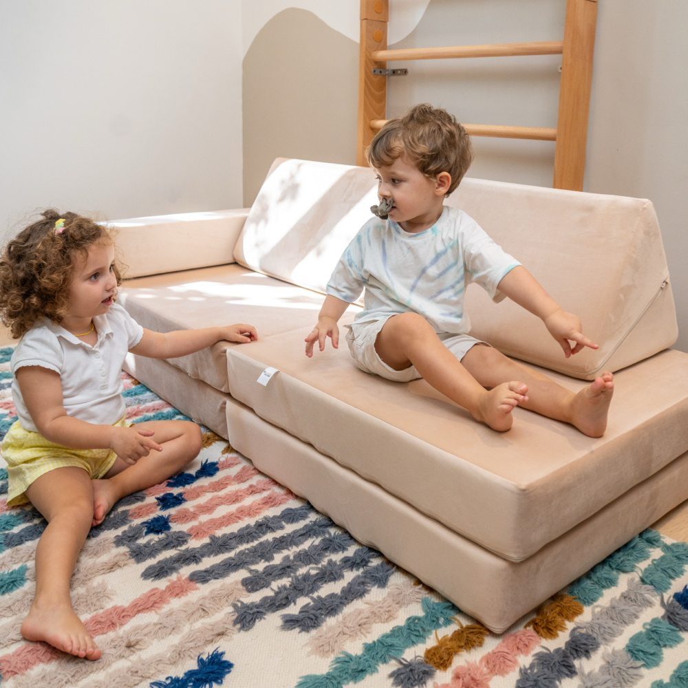 Ezzro Play Sofa Circle bundle is a 10-piece sofa that transforms into numerous play configurations.We’re proud of the high quality of our textiles and work closely with one of Europe’s socially responsible textile manufacturers. With Oeko-Tex Certificate Lux Velvet, we give you confidence that the fabric is free of allergens and completely safe for your children, only ecological paints were used in the production of the material. We chose lower pile velvet for non slippery effect while fabric has a modern, sleek appearance that many customers want. Ezzro uses foam which is firm (high density) and long lasting. Your little ones will enjoy endless hours of fun stretching their imagination. Once the fun and games are over, your Ezzro packs neatly into a stylish sofa which soon becomes your favorite seat in the house. Ezzro Play sofa is incredibly comfortable and can easily be used as a sleepover bed.