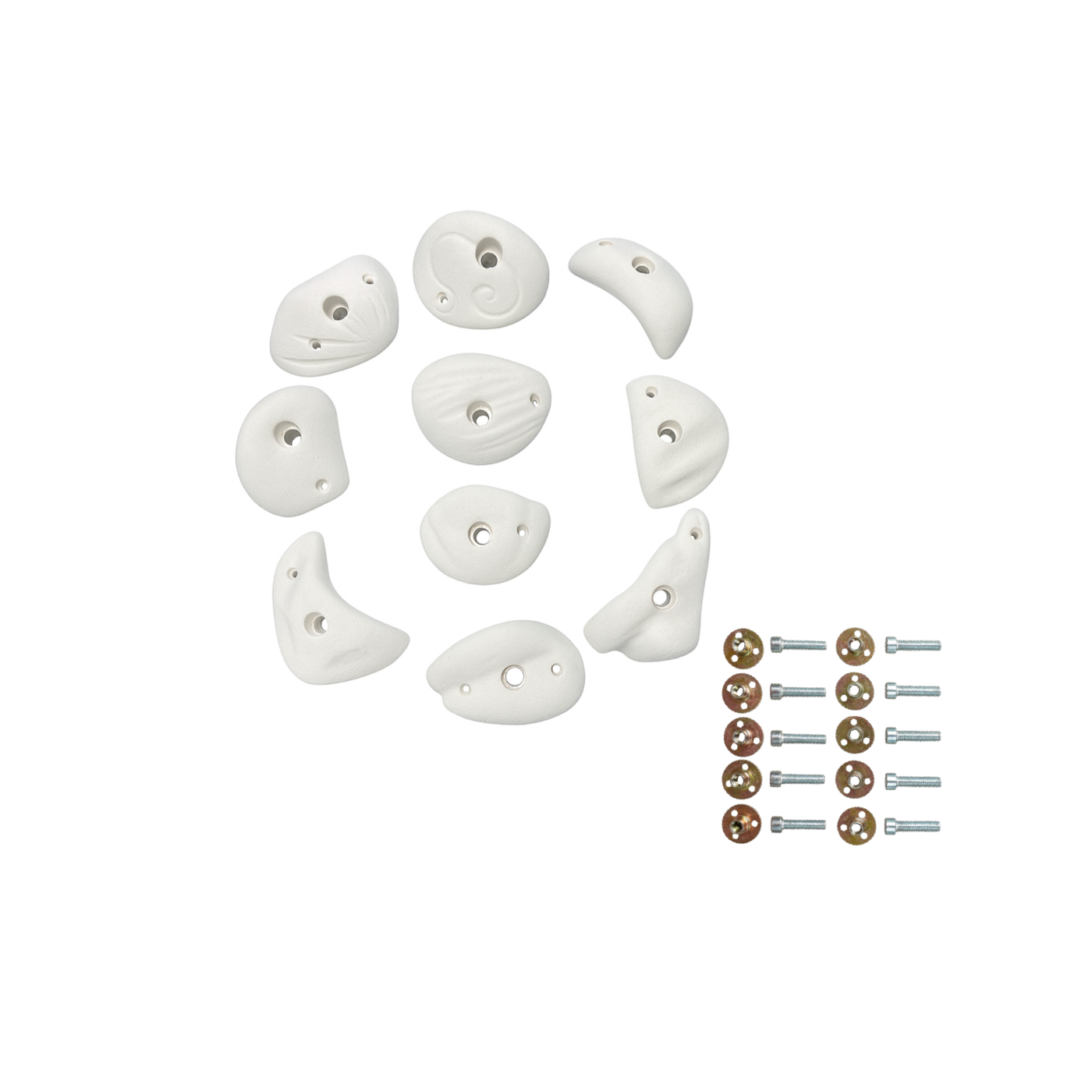 White Durable Resin Rock Climbing Holds - 10 pieces set